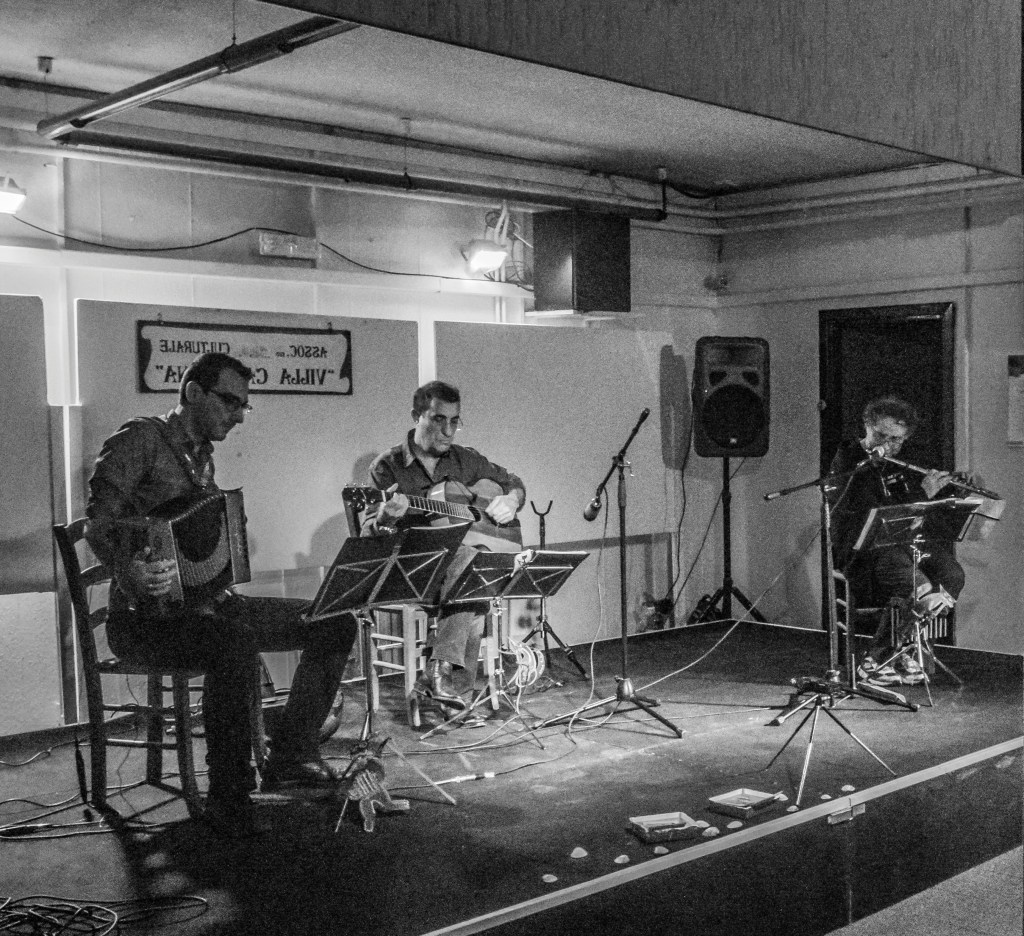 Il trio Le Chat Noir ci accompagnerà in un viaggio sonoro e narrativo, dove il linguaggio universale della musica farà da elemento di unione tra le storie e i destini di uomini e popoli che hanno dovuto lasciare le proprie terre di origine per cercare una vita migliore altrove. La lettura delle lettere e dei racconti dei migranti di ieri e di oggi risuonerà insieme a brani originali del trio e a musiche tradizionali sudamericane, sefardite, arabe, francesi, rivisitate in un linguaggio che fonde il folk, il jazz e la polifonia classica.